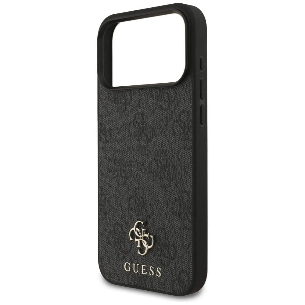 W dolnej części etui znajdują się logo Guess oraz złota naszywka 4G, które subtelnie podkreślają prestiż tego etui.