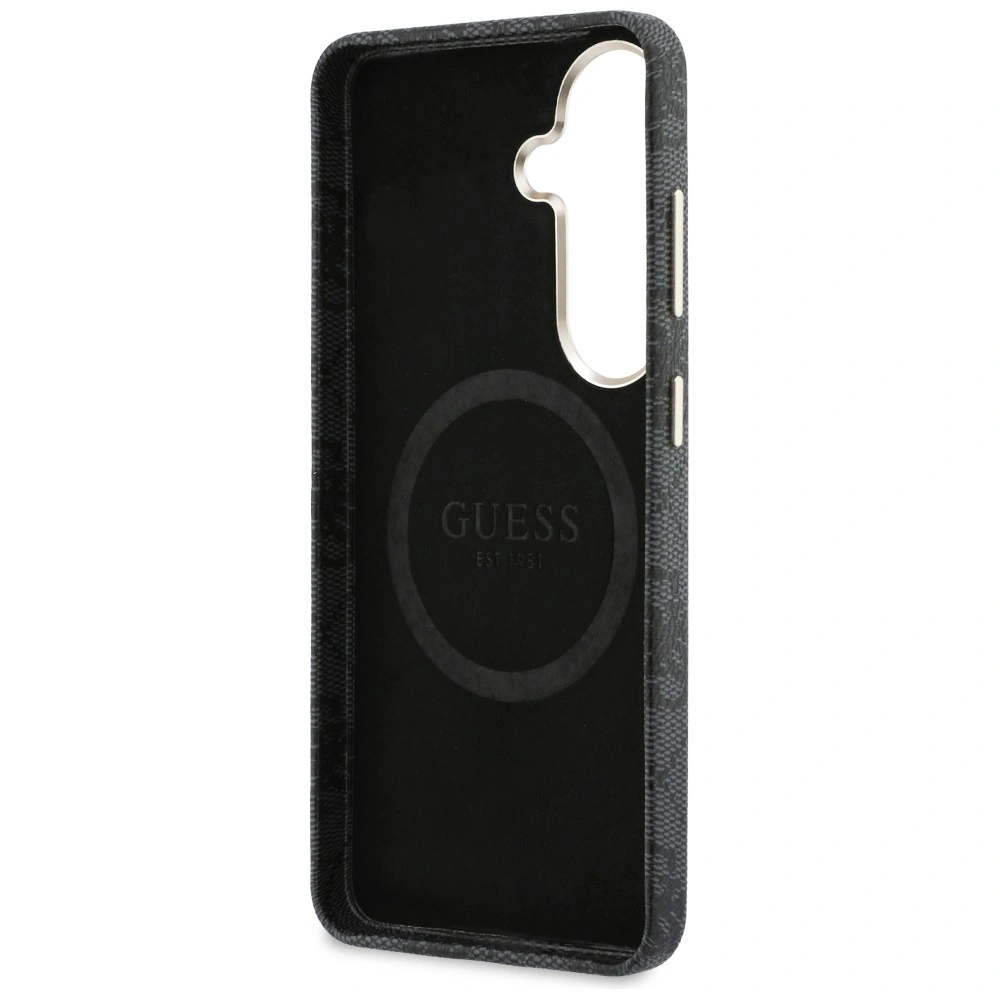 Ekskluzywne etui ochronne od renomowanej marki Guess to połączenie elegancji i stylu na najwyższym poziomie. Powierzchnię etui pokryto elegancką eko-skórą, ozdobioną charakterystycznym wzorem 4G.