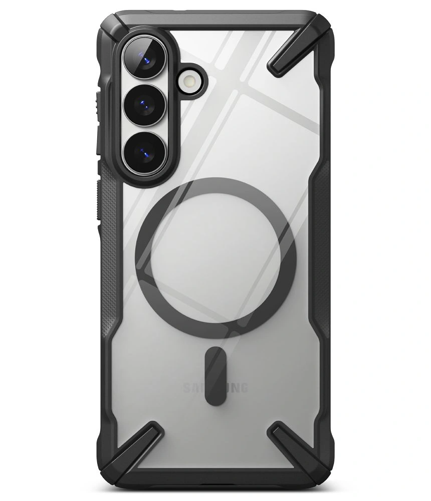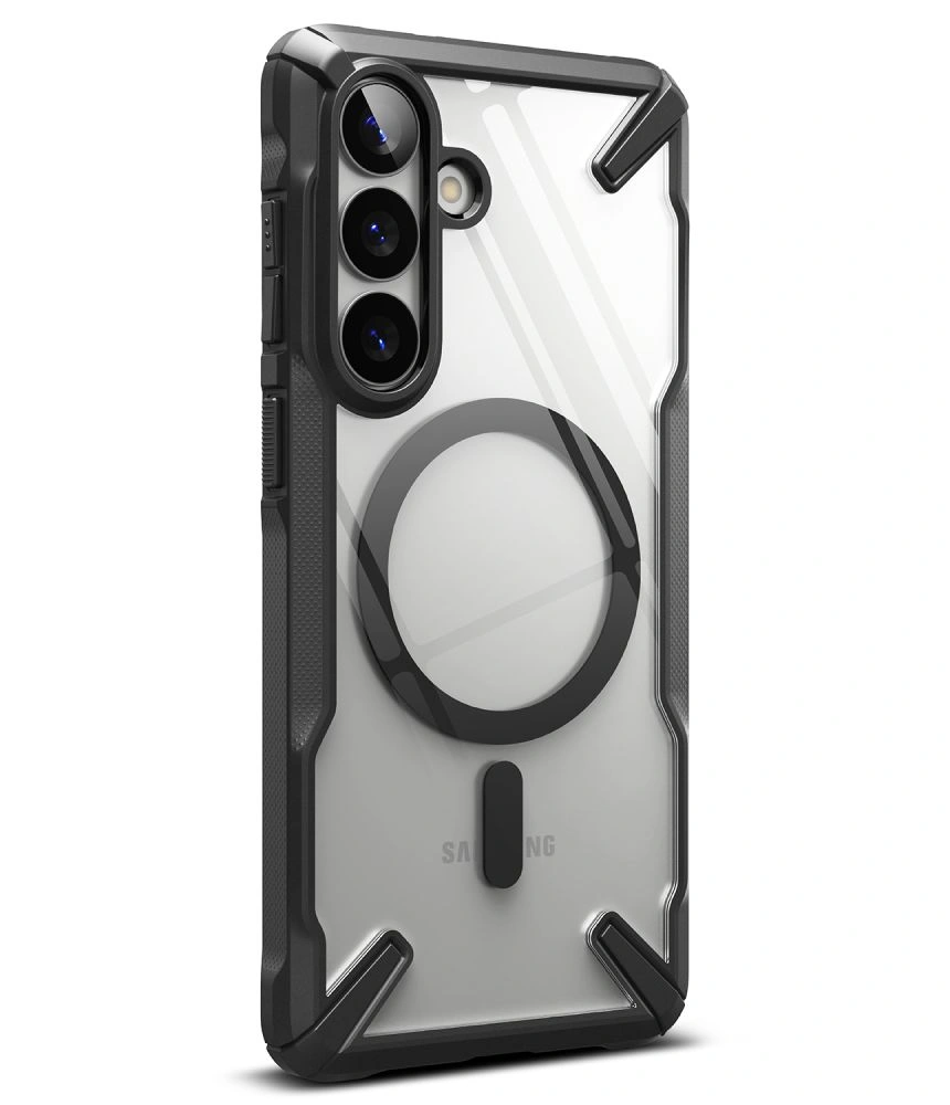 Ringke Fusion X Magnetic MagSafe to wzmocnione etui hybrydowe łączące maksymalną ochronę z funkcjonalnością MagSafe. Wykonane z dwóch warstw - elastycznego termopoliuretanu (TPU) i twardego poliwęglanu (PC) - zapewnia skuteczną ochronę przed upadkami i uszkodzeniami. Wbudowany pierścień magnetyczny umożliwia stabilne mocowanie akcesoriów MagSafe oraz szybkie ładowanie bezprzewodowe. Czarna ramka kontrastuje z przezroczystymi pleckami, tworząc sportowy wygląd i podkreślając oryginalny design telefonu.