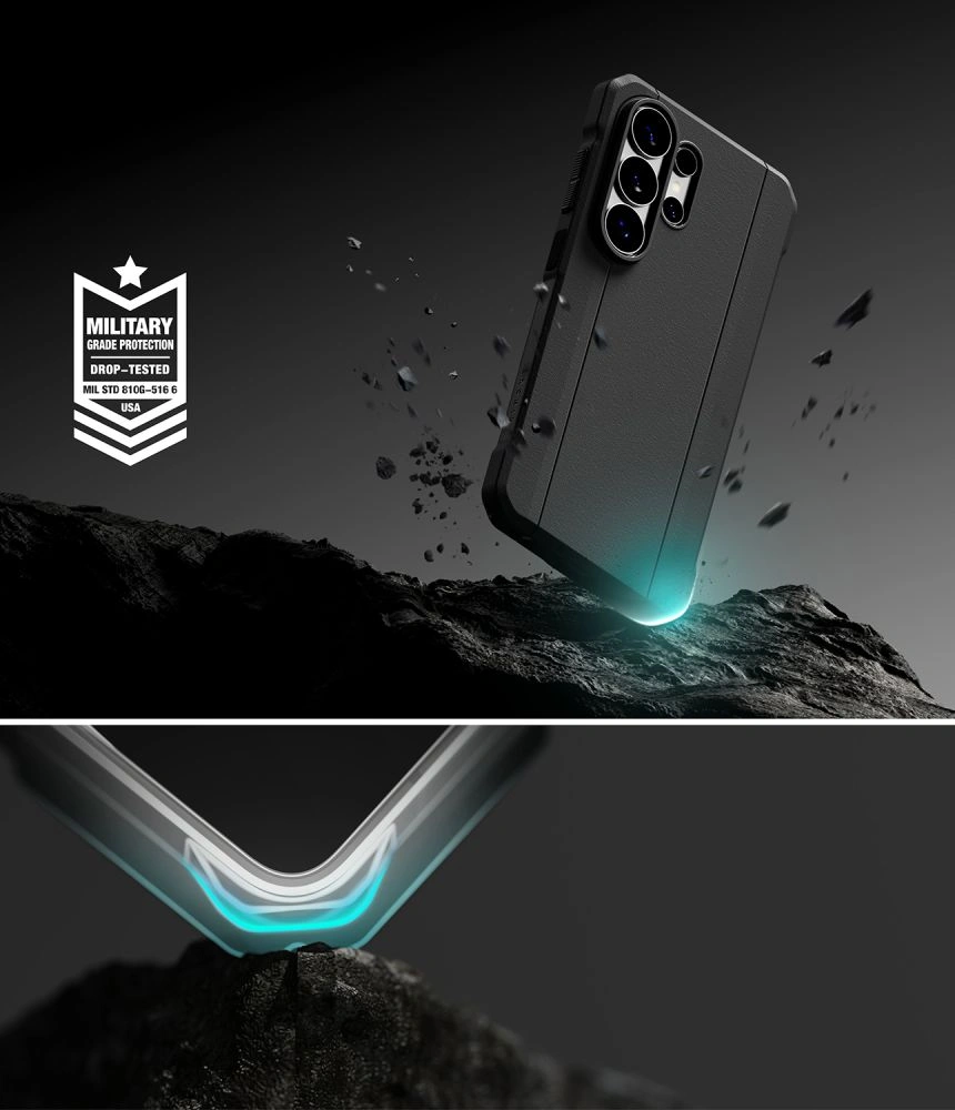 Case skutecznie zabezpiecza urządzenie przed skutkami upadków dzięki certyfikatowi Military Grade, co oznacza przejście szeregu testów wytrzymałościowych. Konstrukcja amortyzuje wstrząsy i chroni telefon przed uszkodzeniami mechanicznymi. Podniesione krawędzie wokół ekranu i wyspy aparatu zabezpieczają wyświetlacz oraz soczewki przed zarysowaniami podczas kładzenia telefonu na płaskich powierzchniach.