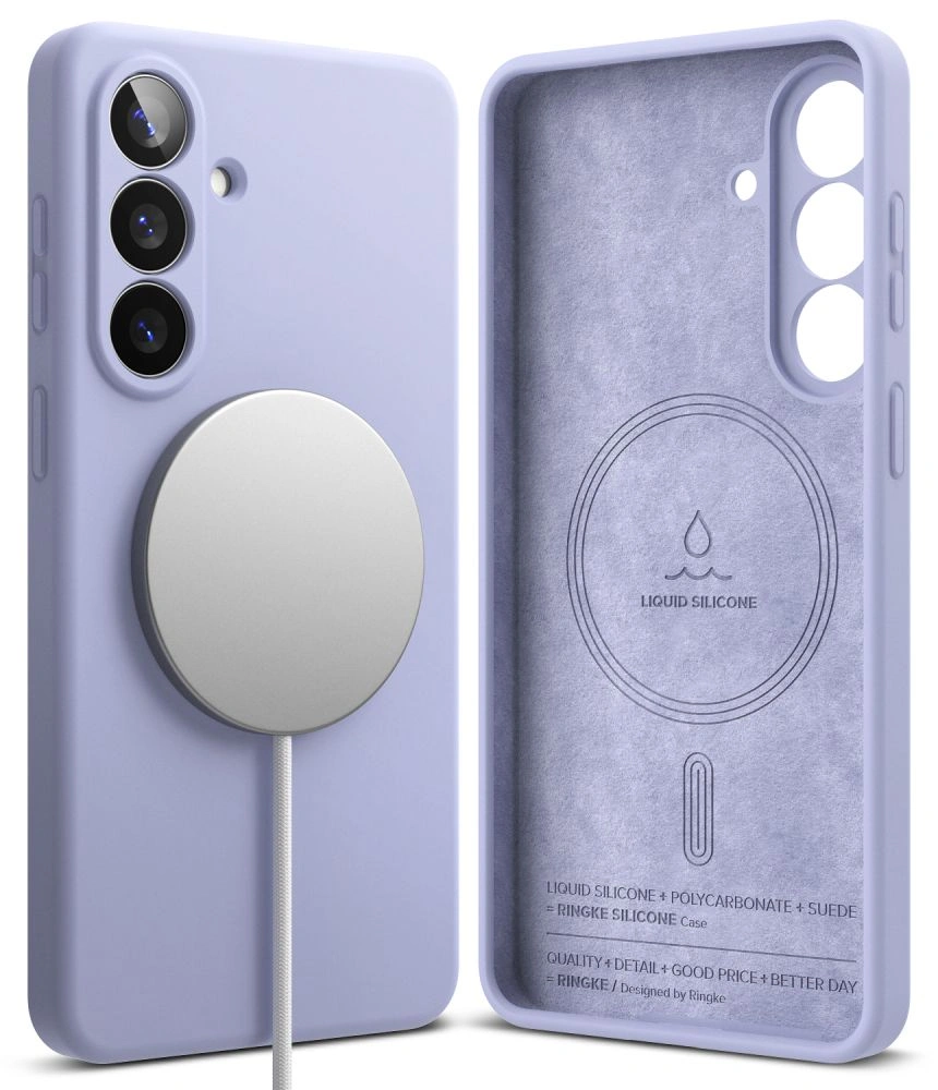 Ringke Silicone MagSafe to smukłe i wytrzymałe etui o hybrydowej konstrukcji. Trójwarstwowa struktura łączy miękką silikonową powłokę zewnętrzną z wzmacniającą ramką PC od wewnątrz, wykończoną miękką mikrofibrą chroniącą tył telefonu przed zarysowaniami. Materiał idealnie wpasowuje się w kształt urządzenia, zapewniając pełen dostęp do wszystkich portów i przycisków. Silikonowa powierzchnia jest przyjemna w dotyku i gwarantuje pewny chwyt, minimalizując ryzyko wyślizgnięcia się telefonu z dłoni podczas codziennego użytkowania.