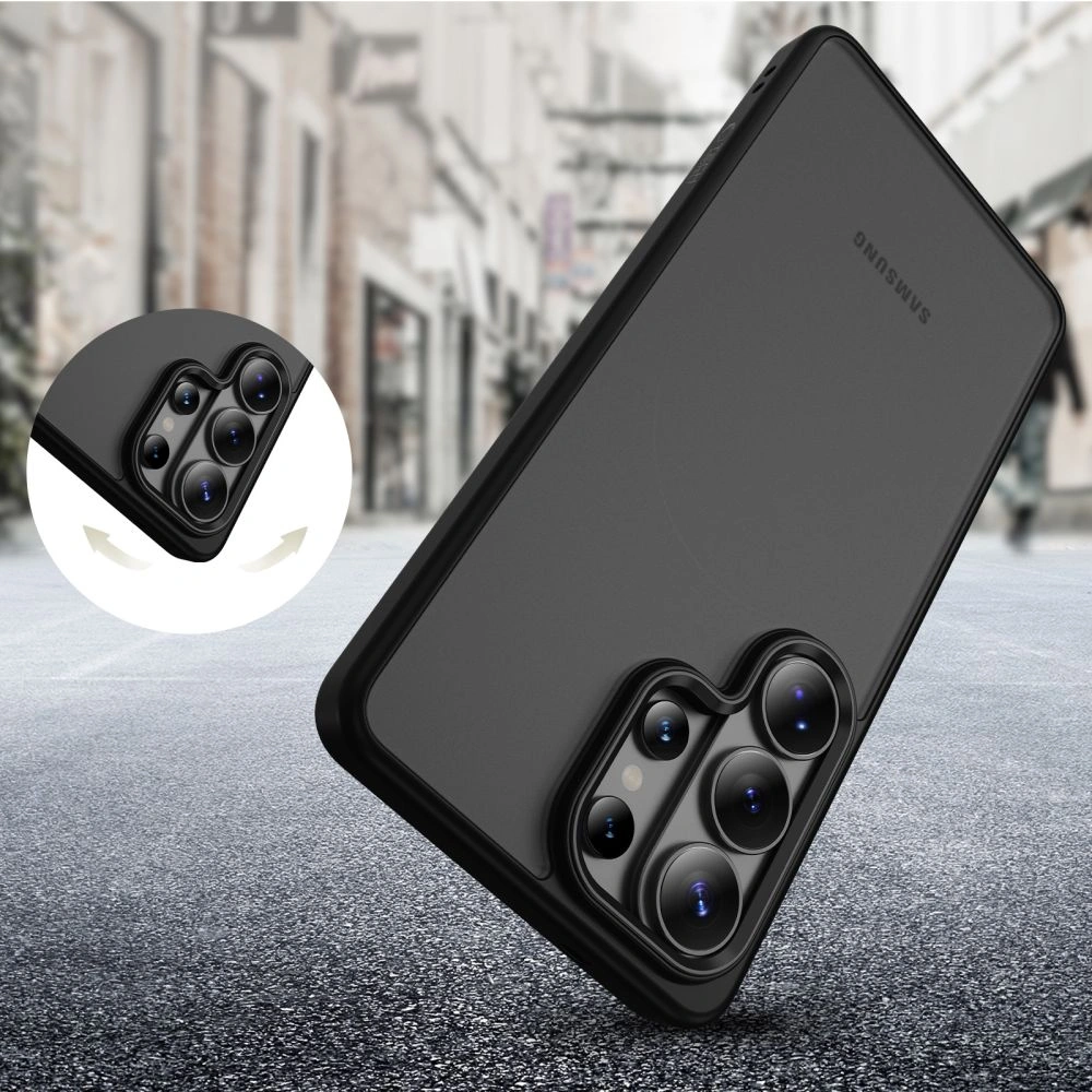 Podniesiona forma obudowy wokół aparatu i ekranu chroni najbardziej wrażliwe elementy przed kontaktem z powierzchnią płaską. Precyzyjne wycięcia gwarantują pełny dostęp do wszystkich portów, przycisków i głośników, nie ograniczając żadnej funkcjonalności urządzenia.