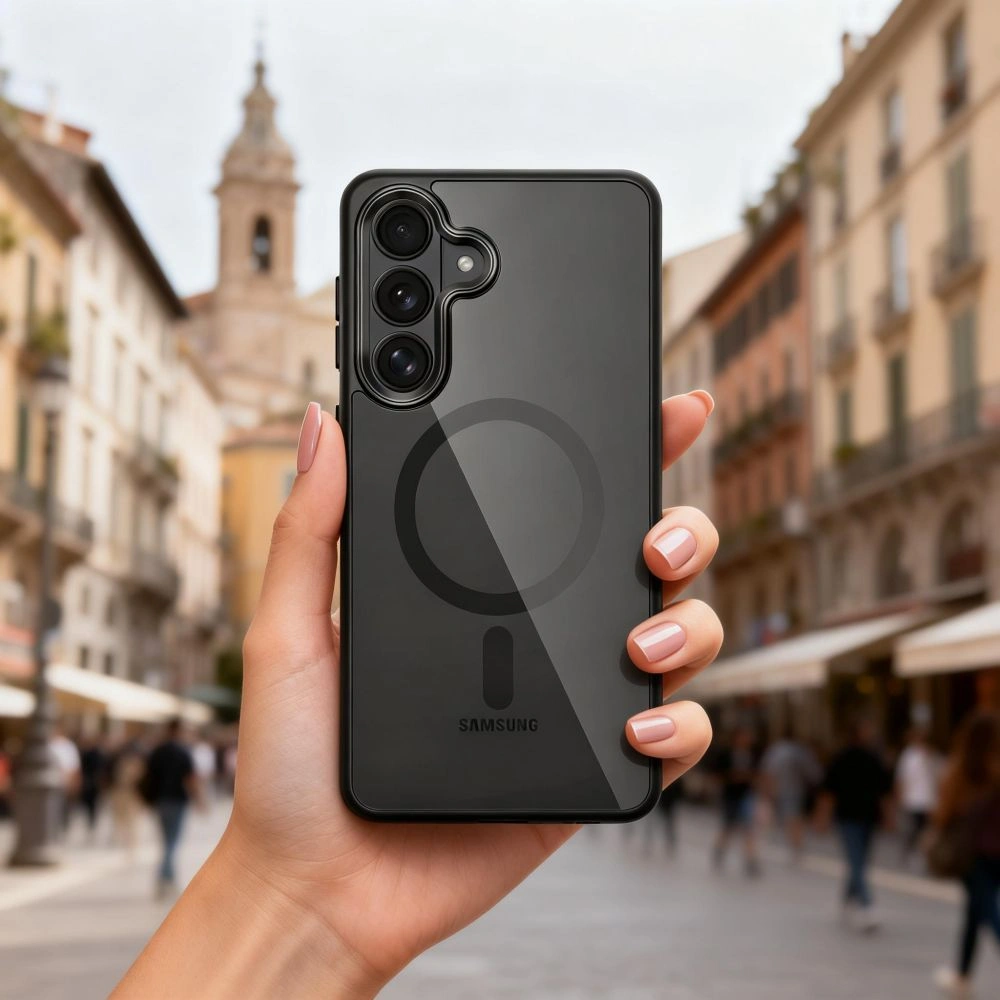 Podniesiona forma obudowy wokół aparatu i ekranu chroni najbardziej wrażliwe elementy przed kontaktem z powierzchnią płaską. Wbudowany pierścień magnetyczny zapewnia pełną kompatybilność z technologią MagSafe, umożliwiając szybkie bezprzewodowe ładowanie oraz wykorzystanie magnetycznych akcesoriów. Precyzyjne wycięcia gwarantują pełny dostęp do wszystkich portów, przycisków i głośników.