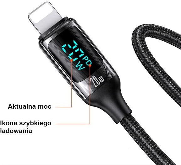 Kabel zapewnia duży komfort użytkowania, umożliwia szybkie ładowanie i wyświetlanie aktualnego stanu ładowania.