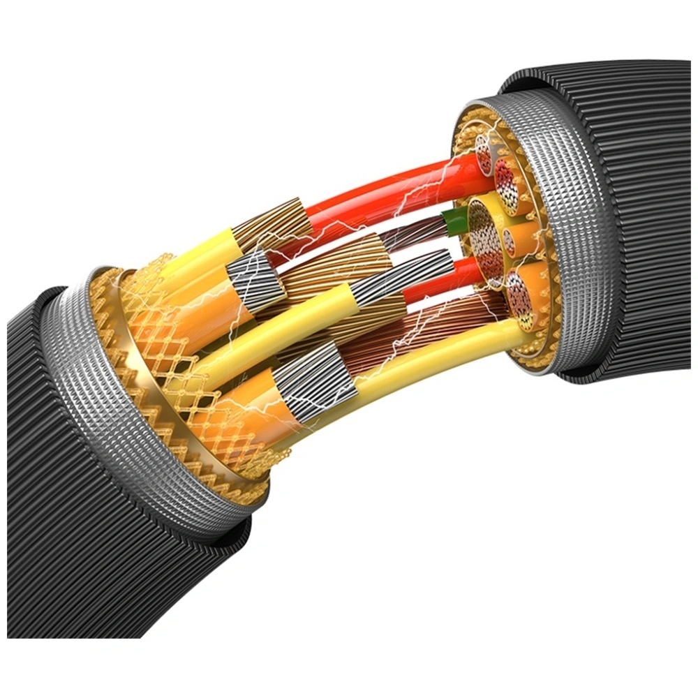 Trwała powłoka z PVC oraz przewodniki z miedzi o wysokiej przewodności dbają o stabilny przepływ prądu, a wzmocnione odgiętki przy wtykach pomagają wytrzymać częste zginanie. Końcówka USB-C ma „schodkowy” kształt ułatwiający podłączenie telefonu w etui, dzięki czemu wtyk siedzi pewnie i nie luzuje się przy przypadkowym pociągnięciu.