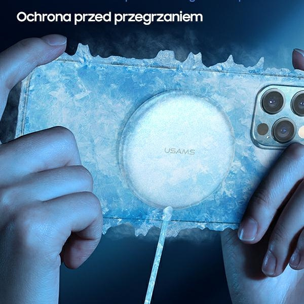 Bezprzewodowa ładowarka USAMS US-CD160 15W Super-thin Magnetic Fast Wireless Charger to produkt o prostej konstrukcji wykonany z aluminium i szkła. Wyposażona w technologię Fast Charge oraz inteligentny układ zarządzania, zabezpieczający sprzęt przed przepięciem, przeładowaniem czy przegrzaniem. Ładowarka posiada magnes, dzięki któremu iPhone serii 12 idealnie ułoży się w miejscu ładowania. Uwaga: aby inne urządzenia mogły uzyskać ładowanie magnetyczne, wymaga użycia płytki magnetycznej (przygotuj ją samodzielnie)