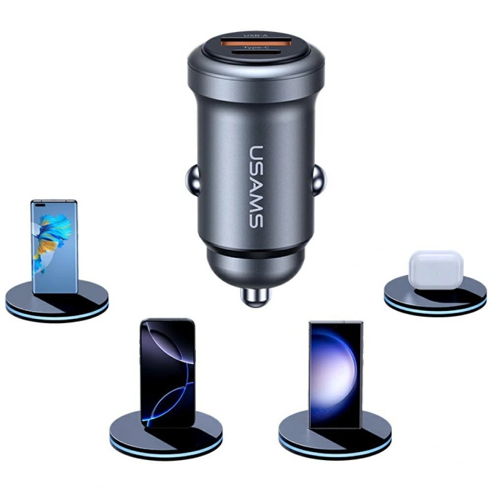 Ładowarka samochodowa USAMS CC322 30W 1×USB-A + 1×USB-C to kompaktowe, wydajne i niezwykle praktyczne akcesorium stworzone dla kierowców, którzy potrzebują szybkiego i bezpiecznego ładowania dwóch urządzeń jednocześnie. Dzięki łącznej mocy 30W oraz dwóm uniwersalnym portom – USB-A i USB-C – ładowarka umożliwia jednoczesne zasilanie smartfonów, tabletów, nawigacji GPS, kamer samochodowych czy powerbanków. Model CC322 obsługuje szybkie ładowanie (m.in. QC 3.0, AFC, FCP), co pozwala skrócić czas ładowania nawet o kilkadziesiąt procent w porównaniu do standardowych ładowarek samochodowych. Inteligentny układ rozpoznaje podłączone urządzenie i automatycznie dostosowuje parametry ładowania, zapewniając maksymalną wydajność przy zachowaniu pełnego bezpieczeństwa baterii.